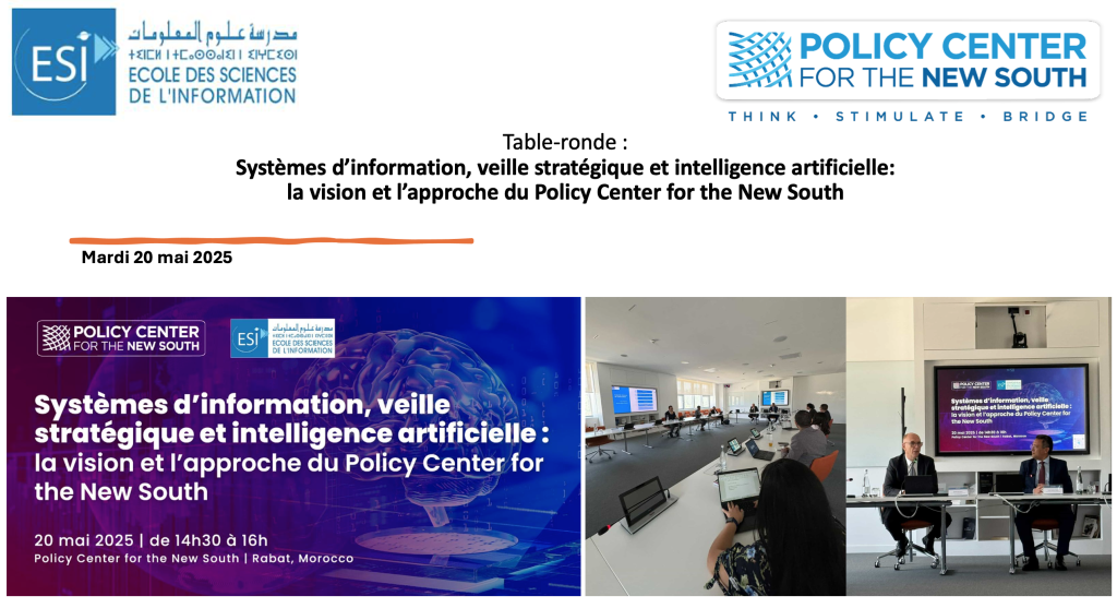 Rencontre entre l’Ecole des Sciences de l’Information [ESI] et le Policy Center for the New South [PCNS], à l’occasion d’une Table ronde sur le thème : “Systèmes d’information, veille stratégique et IA: la vision et l’approche du PCNS“.